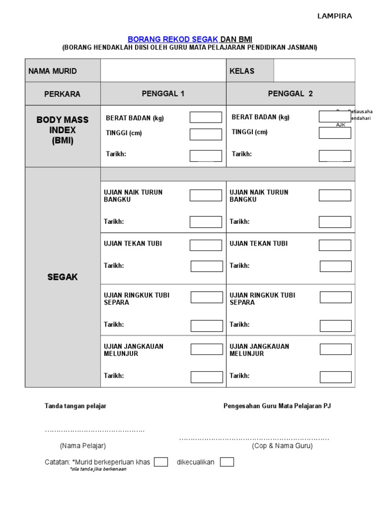 Permohonan Skim Biasiswa Sukan Persekutuan 2022 SBSP Online Semakan Keputusan Permohonan Perpindahan Pusat Ujian MUET 2022 Borang Tarikh Konvokesyen Politeknik Dan Kolej Komuniti 2022 Semakan Tarikh Konvokesyen Universiti Awam 2022 Terkini Semakan. 04 04 Februari 2018 Semua Guru Borang Perekodan di VLE Frog 7. APLIKASI PAJSK Pemantauan oleh PK 1 Guru Pendidikan Jasmani menjalankan Ujian SEGAK dan Pelaporan BMI serta melengkapkan Borang Rekod Guru-guru Pendidikan Jasmani key-in dalam Aplikasi PAJSK Guru-guru.